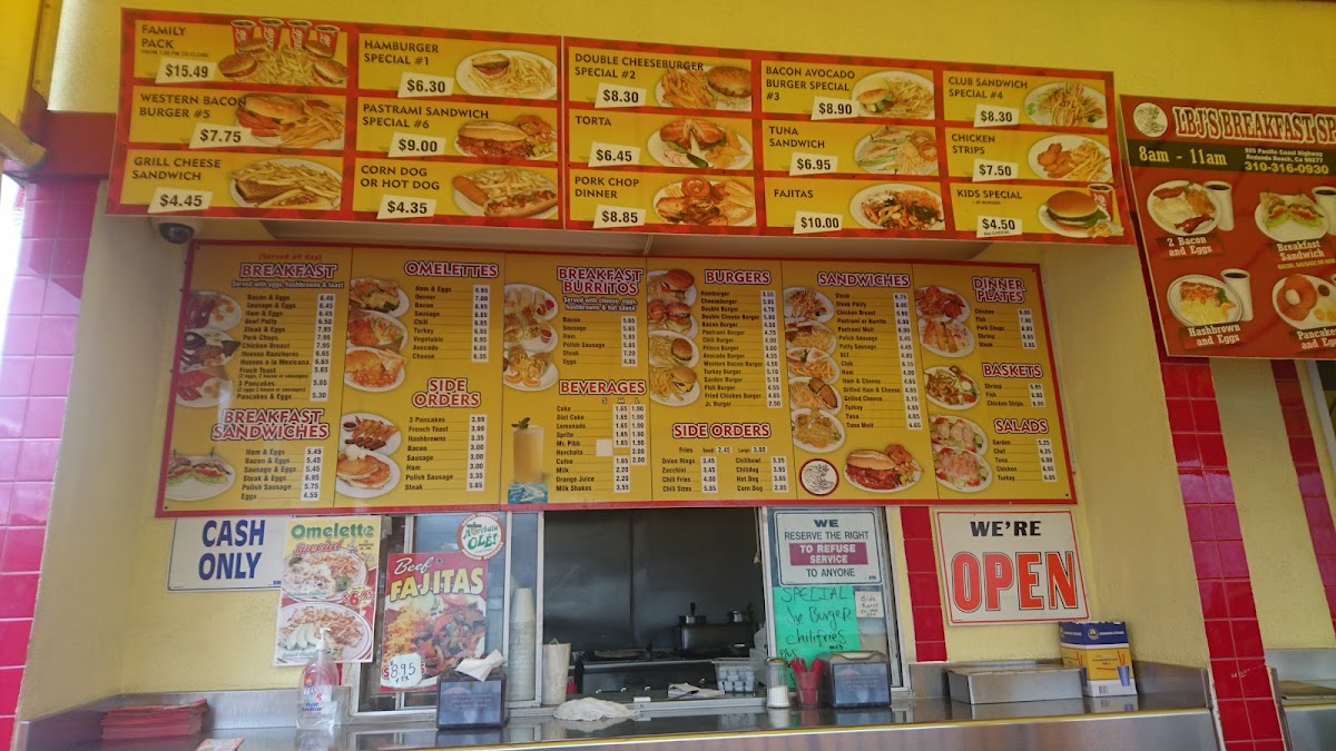 LBJ's Burgers, located at 925 S Pacific Coast Hwy, Redondo Beach, CA, offers a diverse and mouthwatering menu that caters to all kinds of cravings. Starting with Breakfast options, guests can indulge in a hearty Steak & Eggs, or choose from lighter yet satisfying choices like Bacon, Sausage, and Beef Patty. For those who enjoy a more flavorful twist, there are Melettes featuring Lacon, Sausage, and Cheese, or even Turkey & Vegetable for a healthier option.